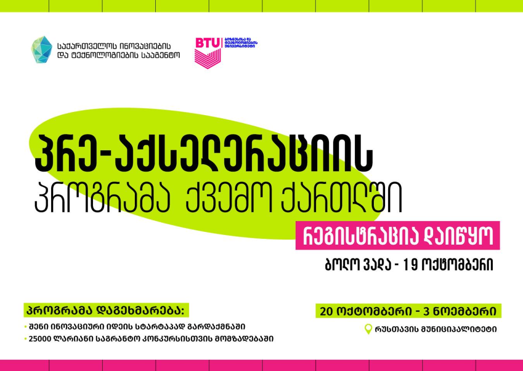Kvemo Kartli bölgəsində innovativ ideyası olan və ya erkən mərhələdə startapa sahib şəxslər üçün pre-aksellerasiya proqramına qeydiyyat elan olunub.