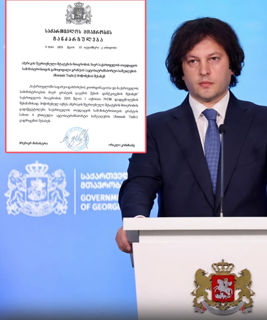 Baş nazir İrakli Kobaxidzenin qərarına əsasən, Müdafiə Nazirliyi Amerika Birləşmiş Ştatları hökumətindən qrant (hədiyyə) şəklində 4 ədəd Renault Trafic markalı nəqliyyat vasitəsi alıb.