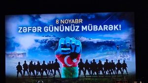 “Bu gün biz burada dost və qardaş Gürcüstanda, Tbilisidə həm qalib xalqın nümayəndələri kimi, həm də sülhə, dostluğa və birgə gələcəyə inanan insanlar kimi bir araya gələrək Azərbaycan xalqı üçün son dərəcə əlamətdar bir günü, Zəfər bayramının 5-ci ildönümünü böyük qürur və sevinc hissi ilə qeyd edirik. Dəvətimizi qəbul edib gəldiyiniz üçün təşəkkür edir və Zəfər Günü münasibətilə təbrik edirəm”.